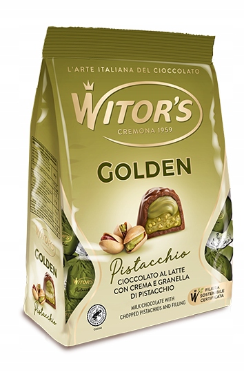 Witor's Praliny to włoskie czekoladowe słodkości, wypełnione delikatnym kremem pistacjowym. Każda pralina skrywa aksamitne nadzienie o intensywnym smaku pistacji, które doskonale łączy się z bogatą, gładką czekoladą. Te praliny to idealny wybór na elegancki poczęstunek, dodatek do prezentu lub chwilę przyjemności dla siebie. Dzięki starannie wyselekcjonowanym składnikom i autentycznym włoskim recepturom, Witor's Praliny z kremem pistacjowym zachwycą każdego miłośnika wyrafinowanych słodyczy.